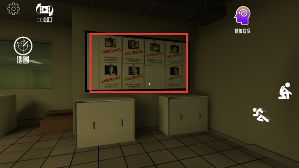 2、探索过程中,注意场景中的线索,如“MISSING”海报,可能暗示游戏背景故事或任务目标。