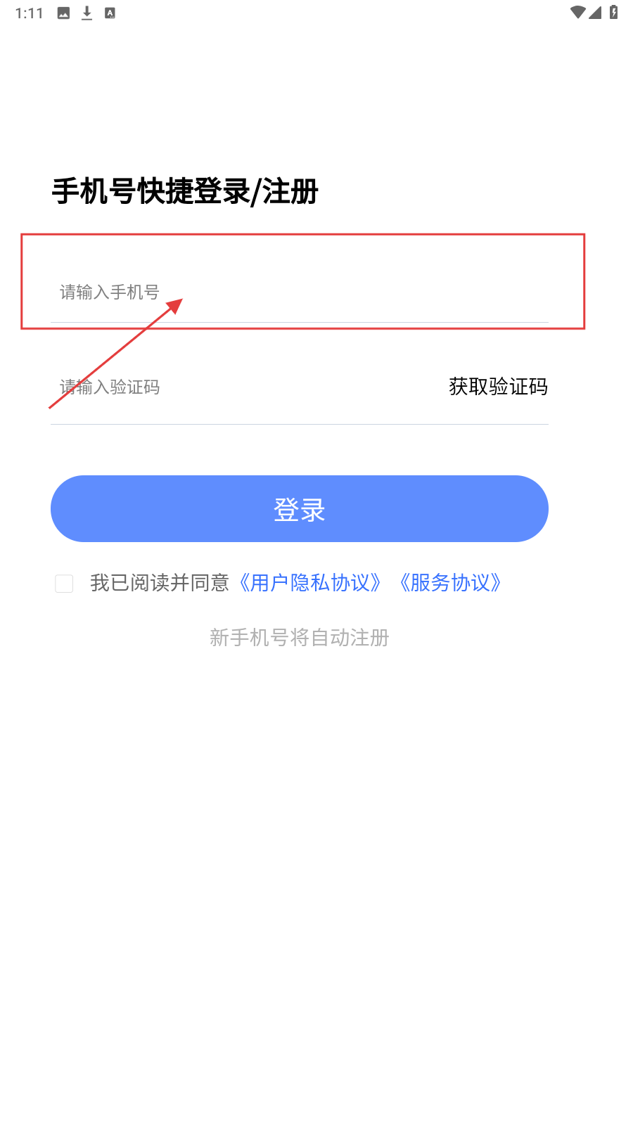 1、进入【手机号快捷登录/注册页】,填入手机号码。