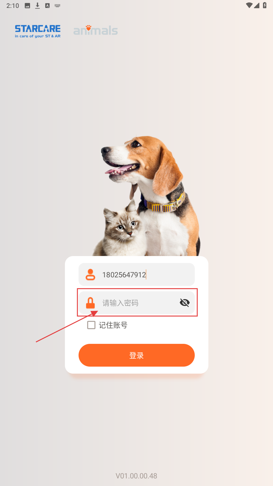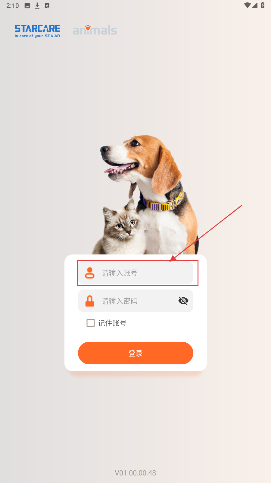 1、打开应用登录页,在【请输入账号】栏填入账号。