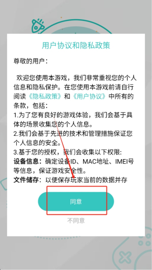 1、同意隐私政策:打开游戏后,阅读并点击“同意”按钮以接受用户协议和隐私政策。