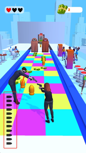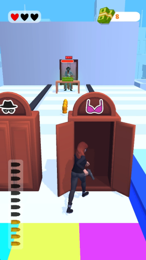 2、双重挑战乐趣:既要在跑酷过程中灵活躲避障碍物,又要巧妙装扮完成暗杀,将动作与策略玩法结合,带来双重游戏乐趣。