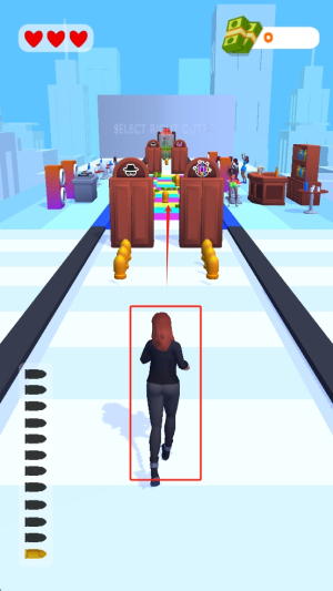 2、跑酷收集伪装:在赛道上敏捷移动,躲避陷阱与障碍物,同时收集散落的装扮道具,根据环境及时改变造型。