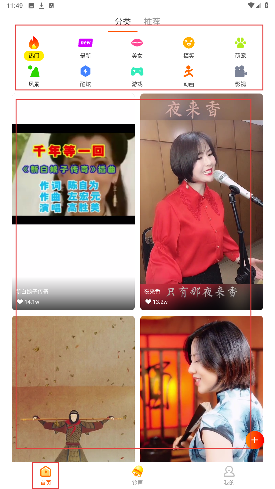 1、打开应用,在【首页】选分类(热门/最新等),挑心仪视频。