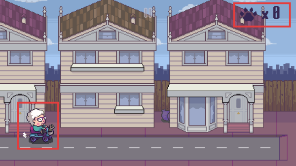1、游戏开始,操控骑代步车的角色在街道移动,注意上方显示的收集目标数量(如爪印×0)。