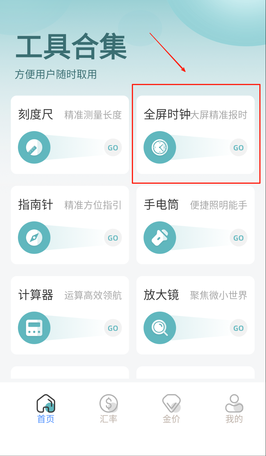3、通过“工具箱”快速调用指南针、全屏时钟等工具,适配户外导航或办公场景需求。