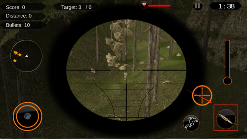 3、使用屏幕上的瞄准和射击按钮进行狙击,注意观察子弹数量和目标位置。