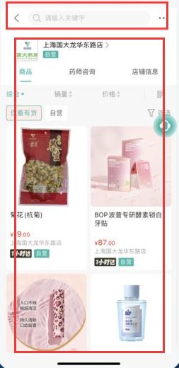 2、输入商品名称(如药品、花类等),或扫码,找到目标商品。