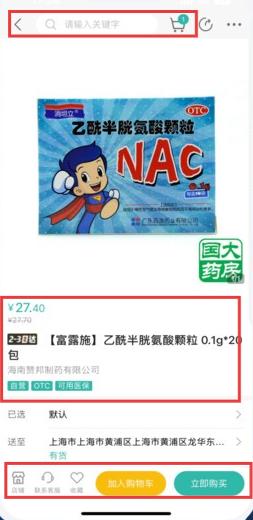 3、进入商品详情页,核对信息后,点击【加入购物车】或【立即购买】,完成购药/购物流程。
