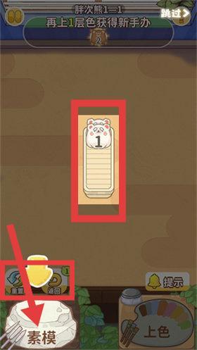 1、游戏开始,观察屏幕中胖次熊的素模形象。点击左下角的“素模”按钮,可能用于查看或调整模型基础形态,为后续操作做准备。