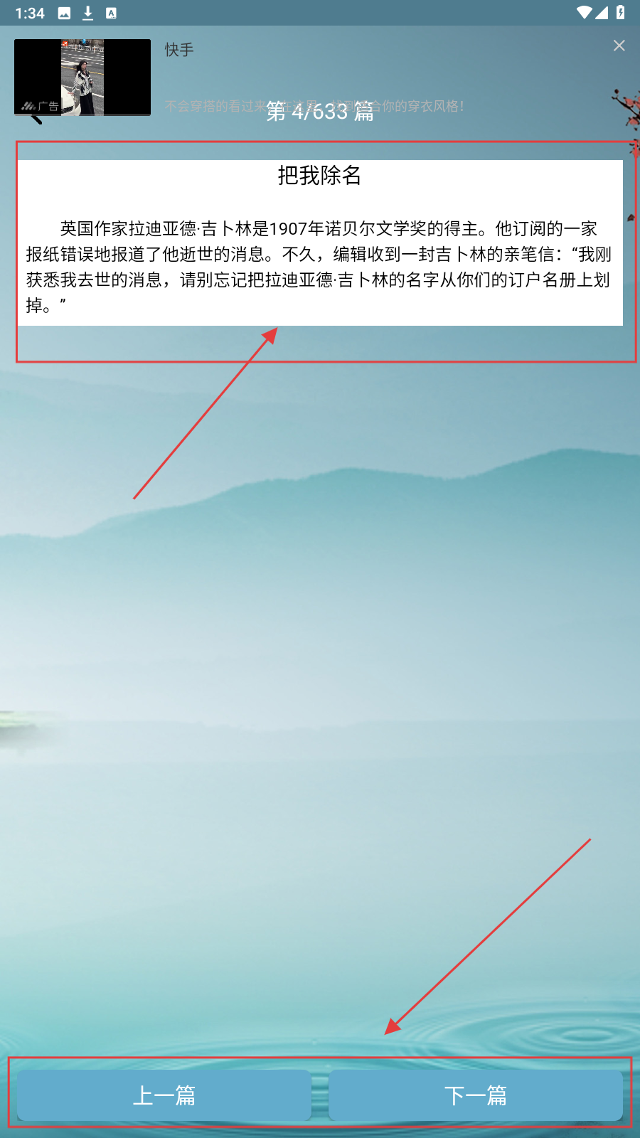 3、进入故事详情页,阅读内容后,可点击【上一篇】【下一篇】浏览其他故事。