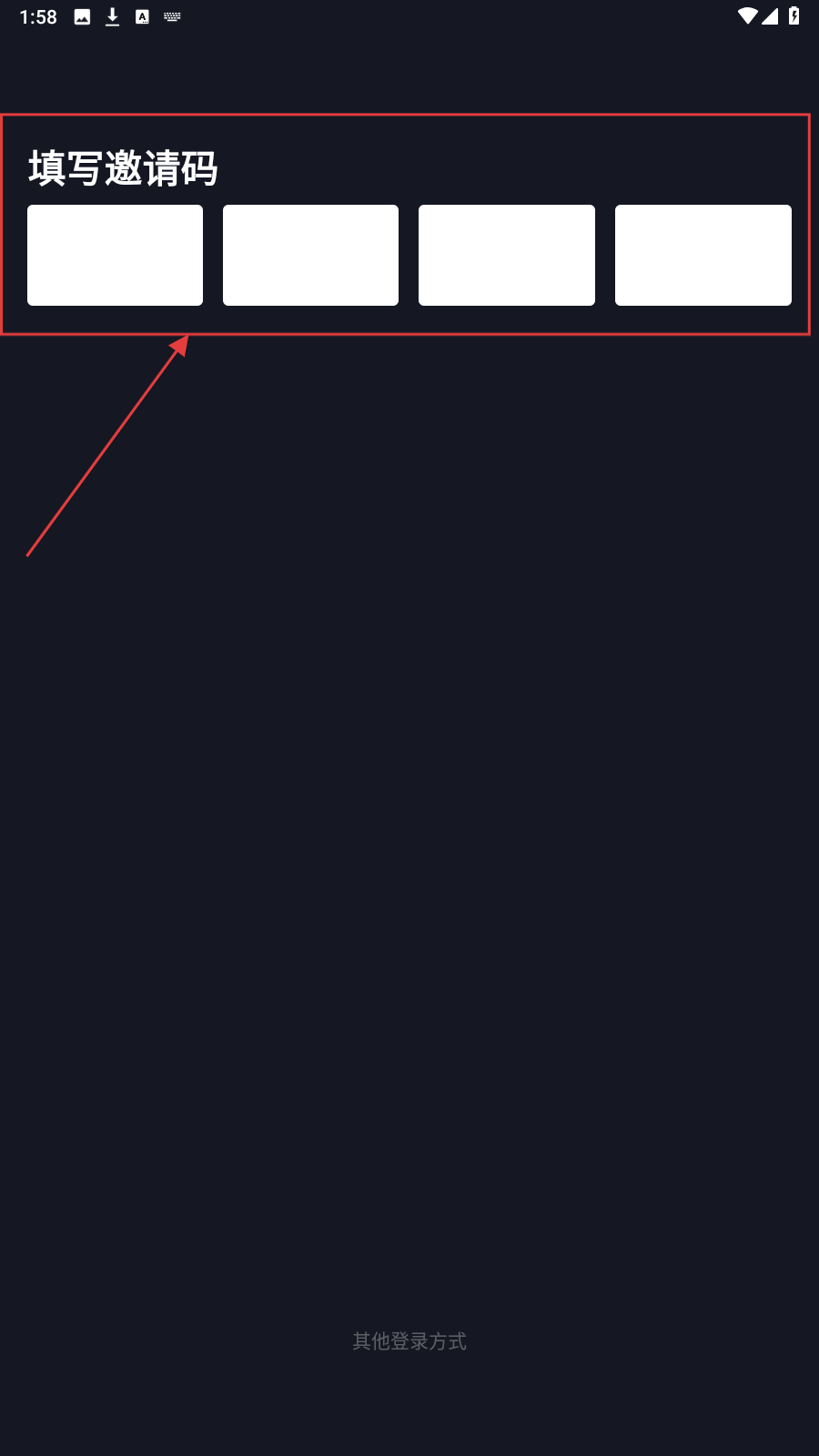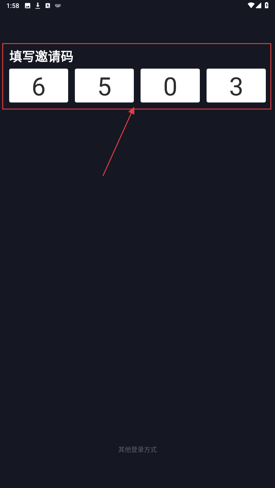 1、打开应用,在【填写邀请码】页,输入邀请码。