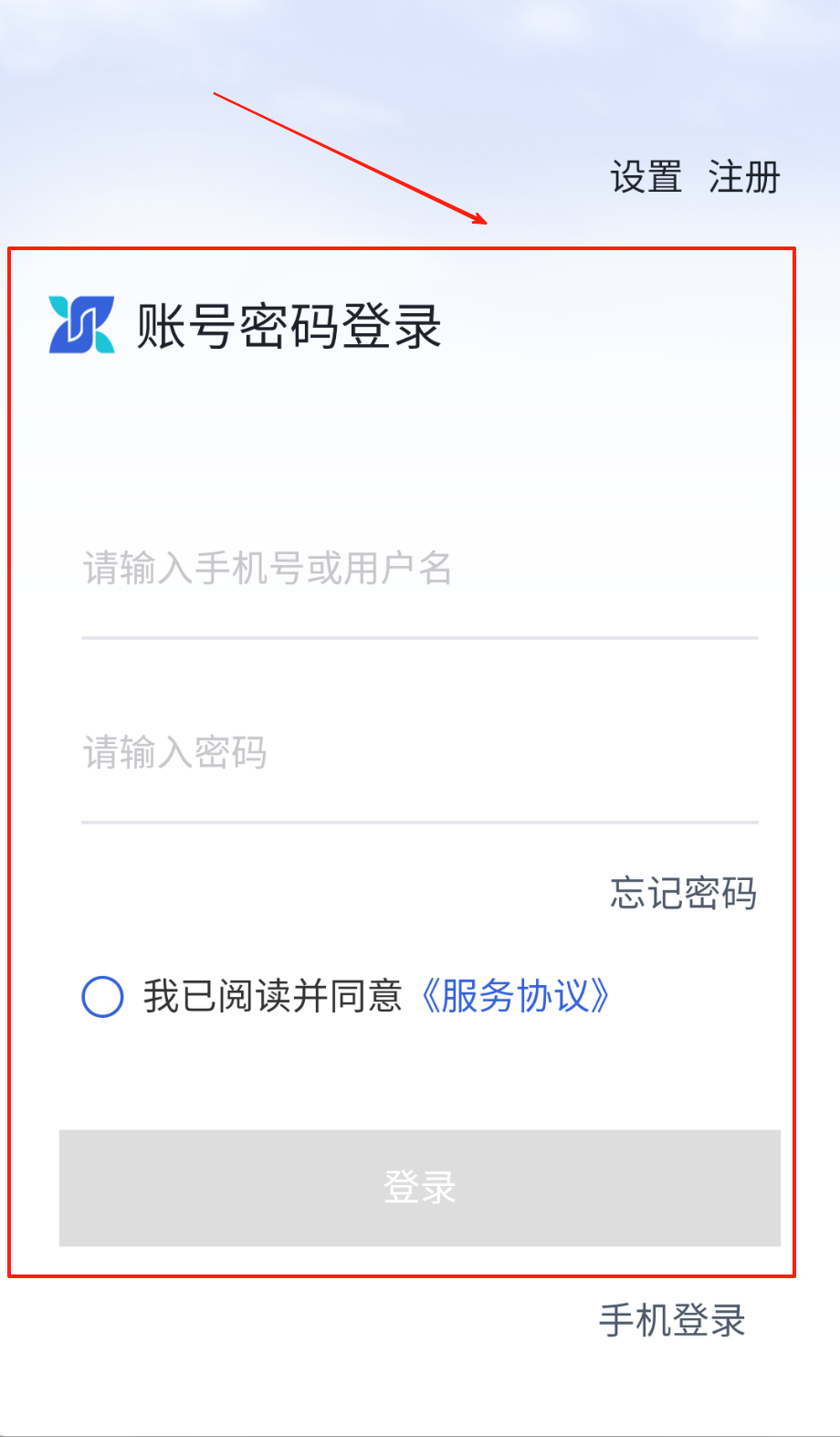 1、登录时打开APP选账号密码登录,填好你的用户名和对应密码,勾选同意用户协议的小框框,点蓝色登录按钮就成啦。