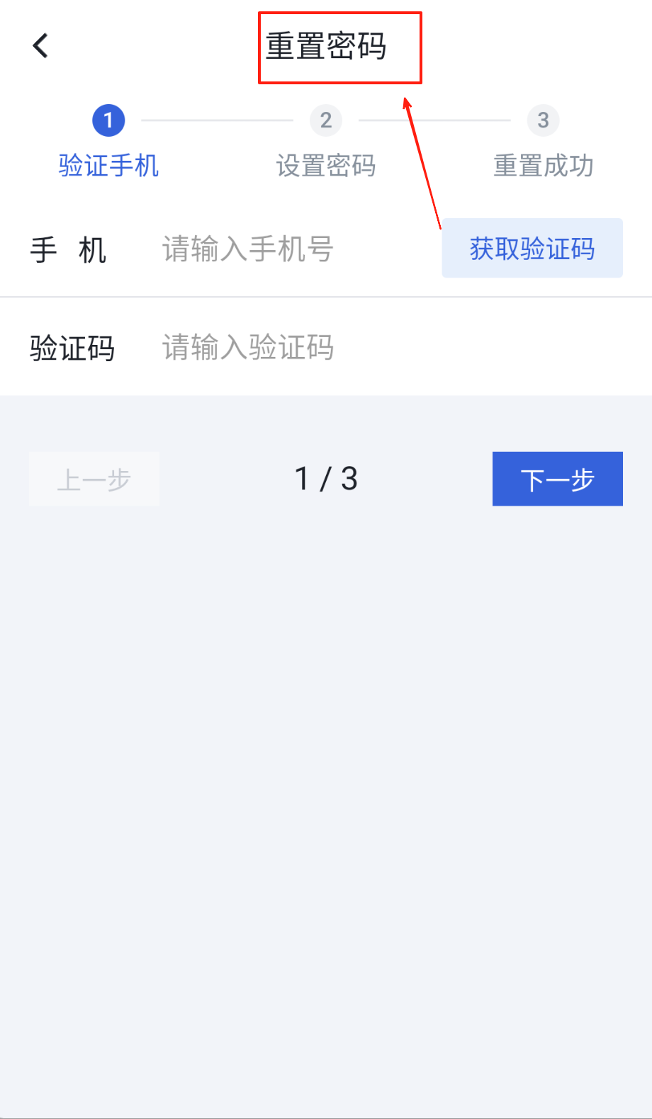 2、忘记密码别慌点重置按钮,在验证页填手机号收验证码短信,收到后把短信里的数字码填进框里点下一步。