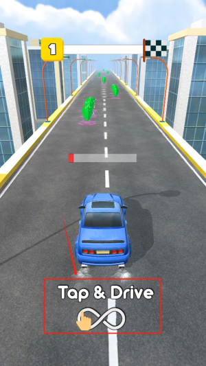1、开始游戏:点击屏幕上的“Tap & Drive”区域,启动车辆并开始游戏。