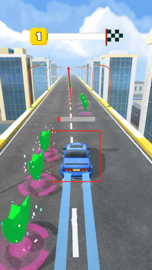 2、操控赛车撞击:通过触屏操作控制赛车方向与速度,主动撞击赛道上的障碍物、其他车辆。