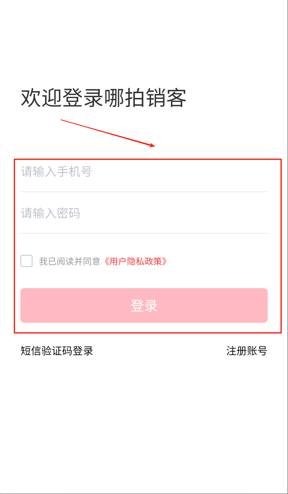 1、登录页输手机号和密码点小眼睛核对,勾"同意用户隐私协议"框再点粉色登录按钮就能进啦。