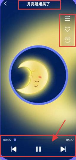3、切换页面,进入故事播放页,显示故事标题、播放控制栏(播放/暂停、快进),还有收藏、定时等功能,点击对应按钮即可设置。