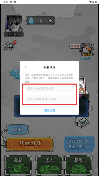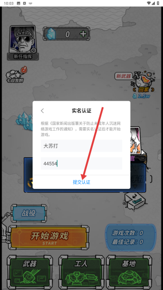 3、点击【提交认证】,即可开始游戏。