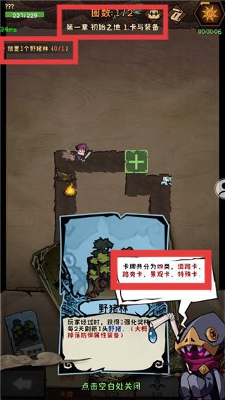 1、游戏开始,在关卡界面查看“困敌1/2”等信息,明确当前关卡任务和目标。了解卡牌分类,合理放置卡牌推进关卡。