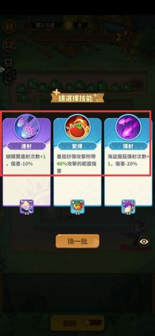 2、随着游戏推进,每一轮,换取获取新技能,合理搭配不同植物,利用其特性抵御怪物。