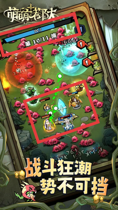 3、进入战斗后,留意波次提示和怪物血量条,操控英雄技能释放,应对怪物进攻,完成波次挑战,获取奖励提升英雄和能力果实等级。