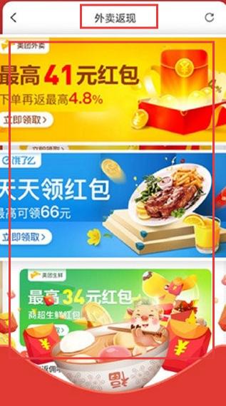 3、选【外卖返现】分类,查看美团、饿了么红包活动,点击“立即领取”。