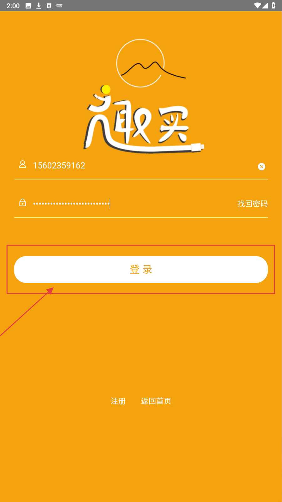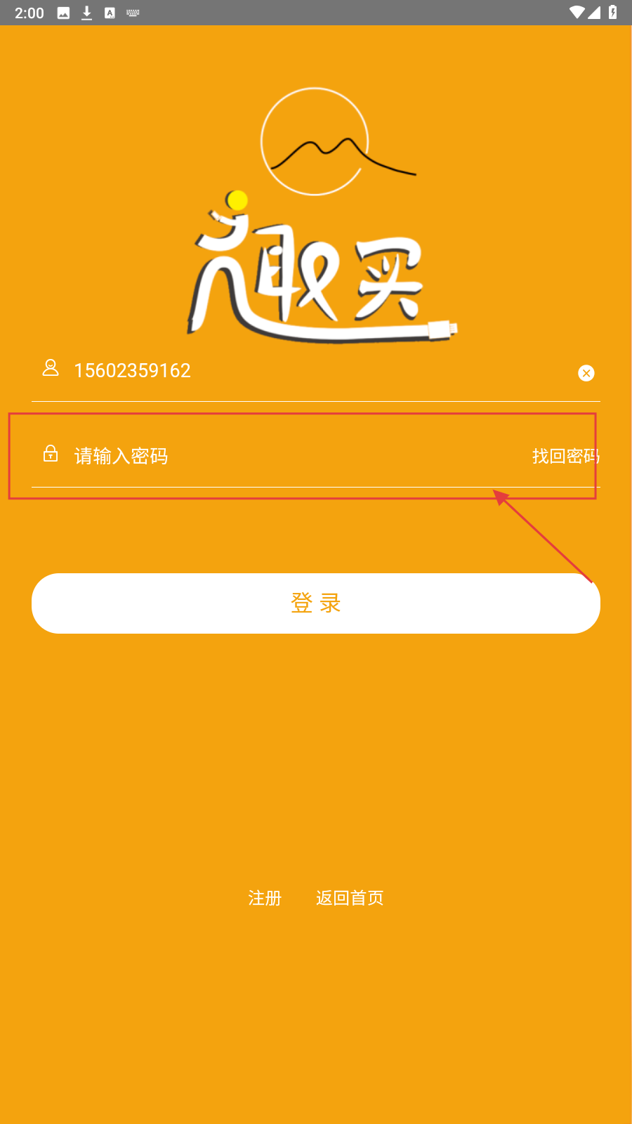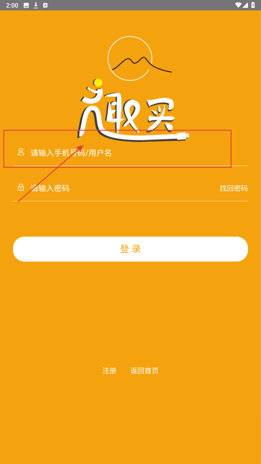 1、打开应用,在登录页,输入手机号码/用户名信息。