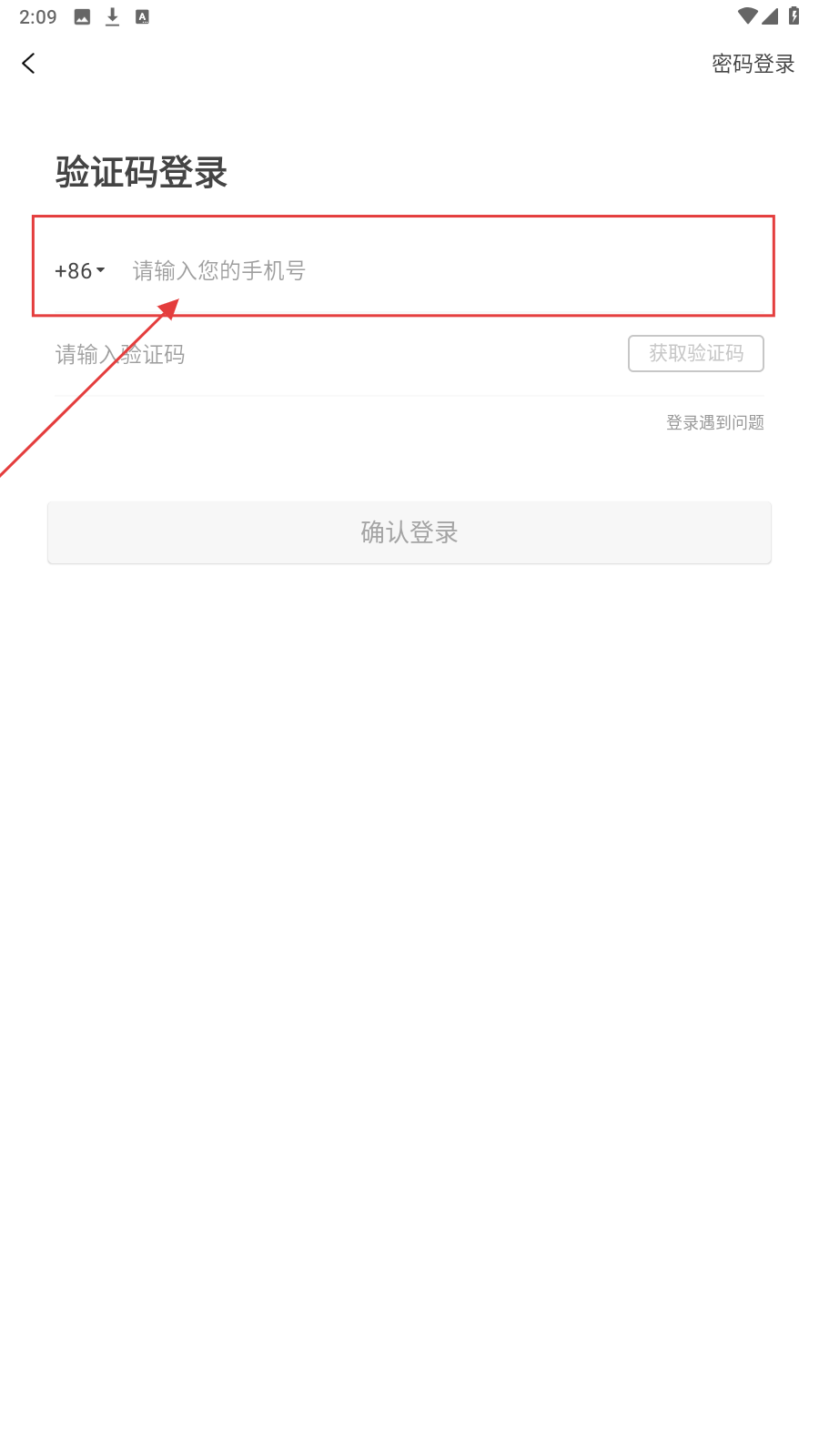 1、打开应用,在【验证码登录】页,输入手机号码信息。