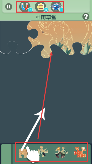 2、进行拼图游戏时,可点击下方拼图拖至对应位置完成拼接。