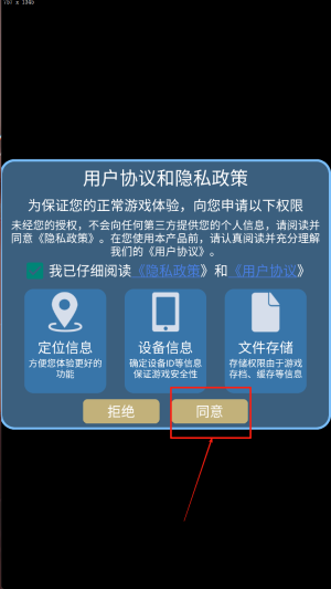 1、同意用户协议:在游戏开始前,阅读用户协议和隐私政策,并点击“同意”按钮以继续。