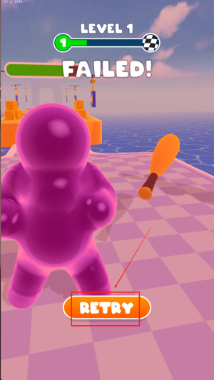 3、重试挑战:如果游戏失败,点击“RETRY”按钮重新挑战当前关卡。