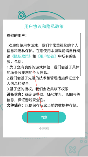 1、同意隐私政策:阅读用户协议和隐私政策,点击“同意”按钮以继续游戏。
