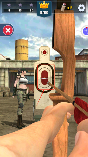2、触屏拉弓调整角度:根据距离和环境,调整弓箭角度与拉弓力度,找到最佳发射状态。