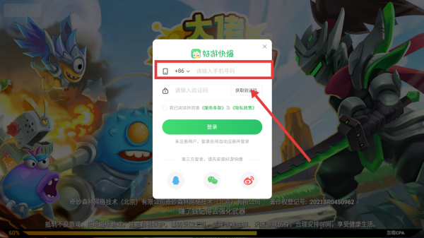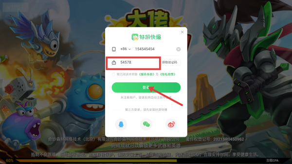 3、输入验证码,点击【登录】,即可开始游戏。