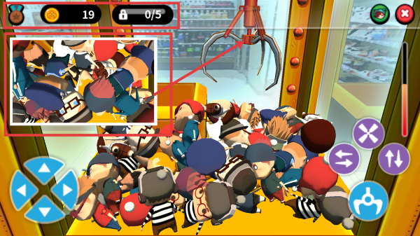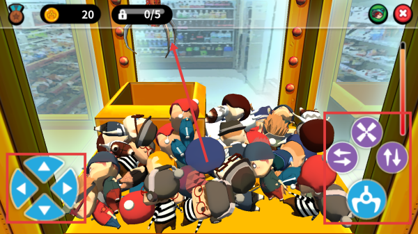 1、游戏开始,明确目标是抓取一定数量的娃娃。利用左下角的方向按钮操控爪子移动,右下角的功能按钮调整爪子状态。