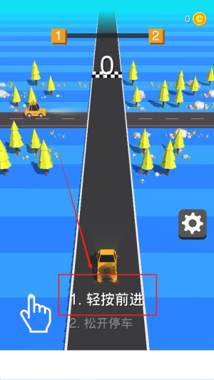 1、控制车辆:轻按屏幕使车辆前进,松开屏幕让车辆停止。