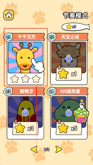 2、操控猫咪弹球:通过触屏操作,控制猫咪弹射弹球,让弹球准确击打节奏点,跟随音乐律动。
