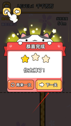 3、完成关卡:成功完成关卡后,点击“下一关”按钮继续挑战下一个关卡。