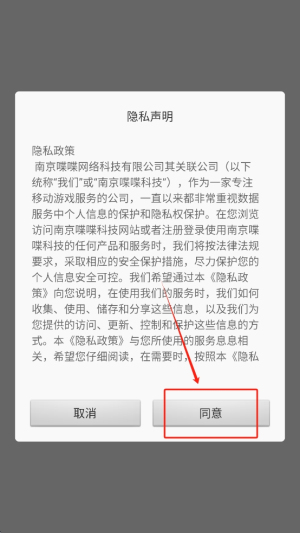 1、接受隐私声明:阅读隐私声明并点击“同意”以接受条款并继续游戏。