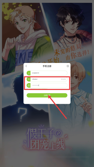 3、输入验证码和密码,点击【立即注册】,即可开始游戏。