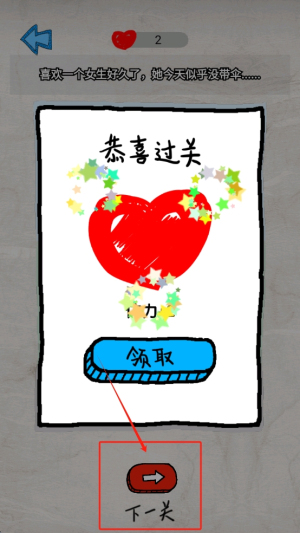 3、完成关卡:成功完成关卡后,点击“下一关”按钮继续游戏或点击“领取”按钮获取奖励。