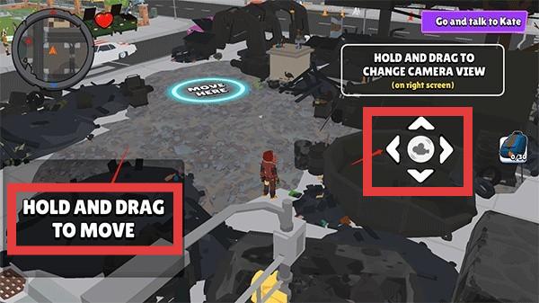 1、熟悉操作,按住并拖动屏幕左侧(“HOLDANDDRAGTOMOVE”)控制角色移动,右侧控制视角,方便探索环境。