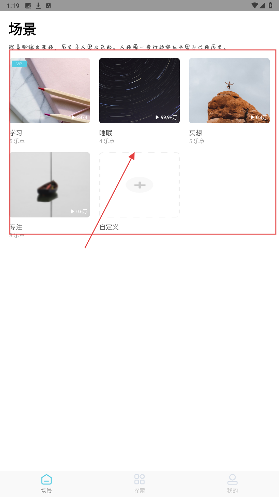 1、打开场景化音频应用,进入【场景】页,点击【睡眠场景卡片】。