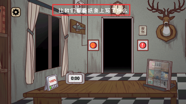 1、开局留意提示,找到并查看纸条,明确游戏规则和任务目标。