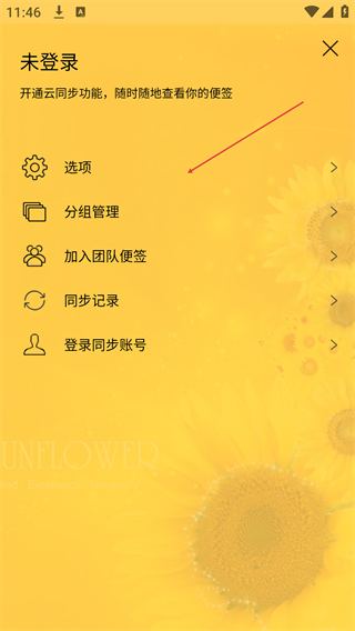 2、在功能选项列表中,选择【选项】进入设置页面。