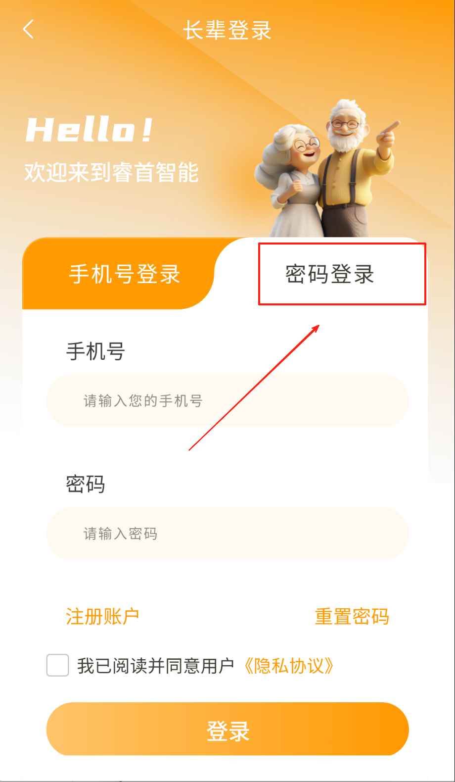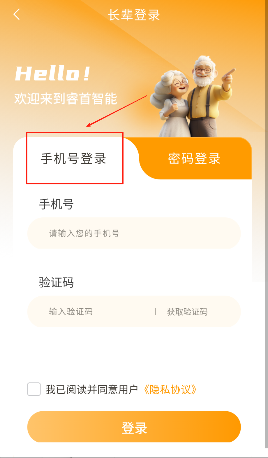 2、长辈登录点手机号输入栏,填11位号码后戳"获取验证码",短信来的四位数字填进验证框就能登录啦。
