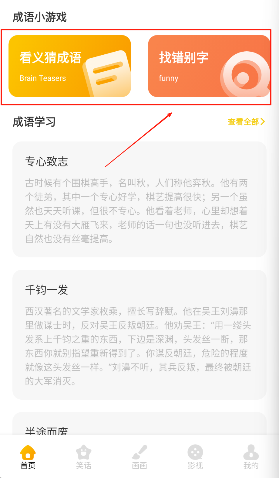 3、填字游戏拖动成语卡片到九宫格,连续通关解锁《三国演义》章回体动画讲解呀。
