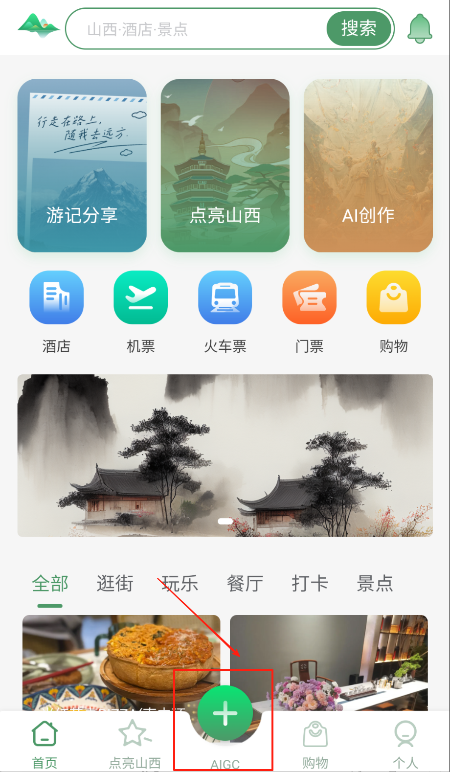1、点击"+"选择"发布动态",上传平遥古城九图并添加#晋商文化标签,AI自动生成古建筑知识卡片哦。