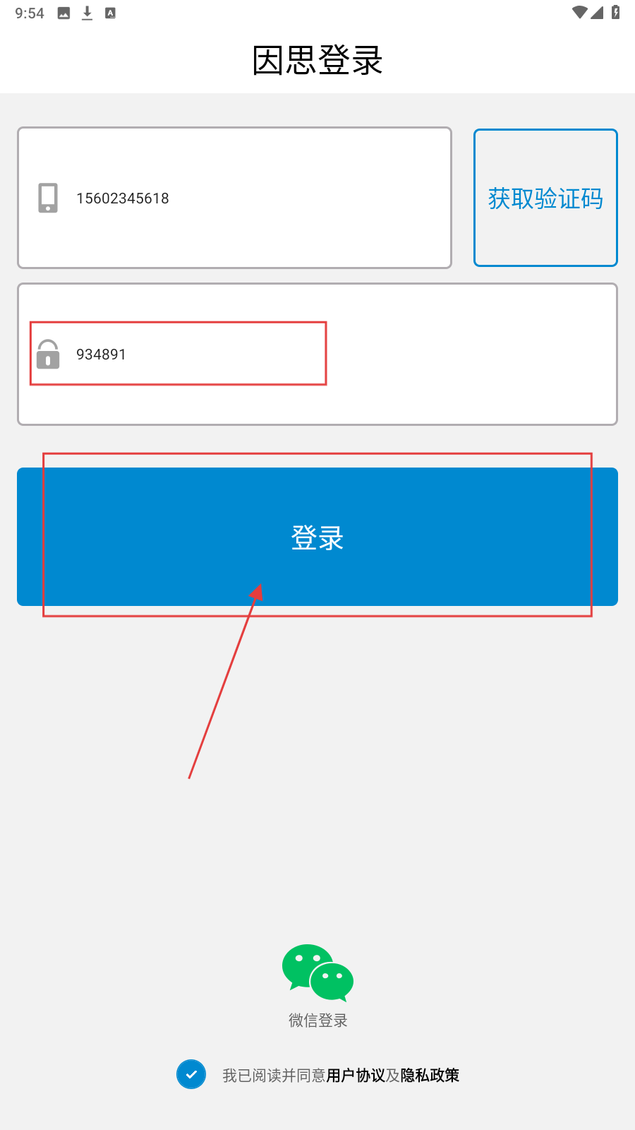 3、勾选【我已阅读并同意用户协议及隐私政策】,点击【登录】按钮,完成登录流程。