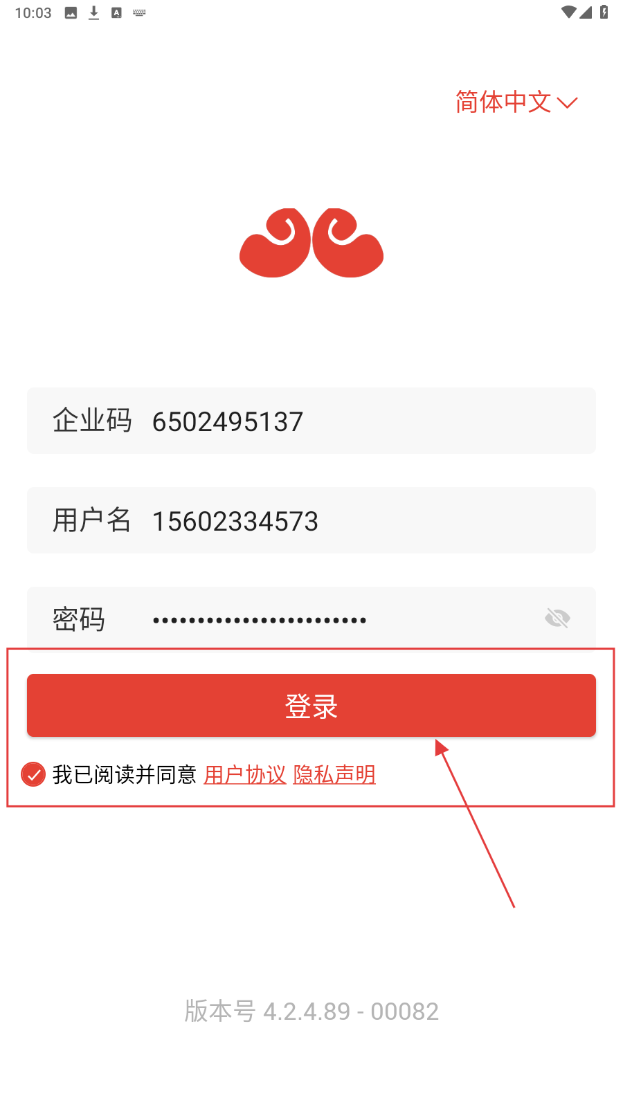 3、勾选【我已阅读并同意用户协议隐私声明】,点击【登录】按钮,完成登录流程。